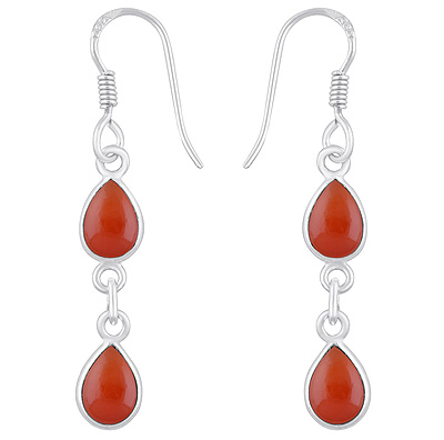 Home | Silver Earrings | Cabochon Earrings | Beautiful Two Stone Bezel Carnelian Pear Shape 925 Sterling Solid Silver Dangle Earrings