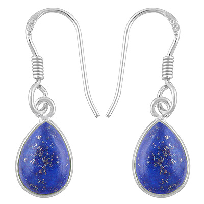 Home | Silver Earrings | Cabochon Earrings | Beautiful Handmade Bezel Lapis Pear Shape 925 Sterling Solid Silver Dangle Earrings