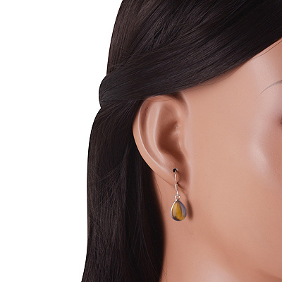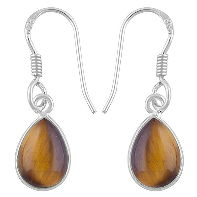 Home | Silver Earrings | Cabochon Earrings | Beautiful Handmade Bezel Tiger's Eye Pear Shape 925 Sterling Solid Silver Dangle Earrings
