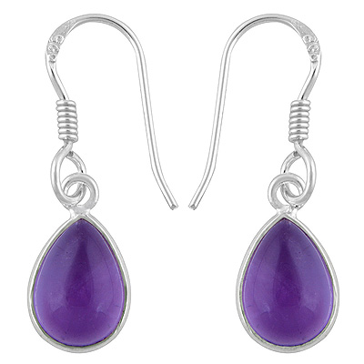 Home | Silver Earrings | Cabochon Earrings | Beautiful Handmade Bezel Amethyst Pear Shape 925 Sterling Solid Silver Dangle Earrings