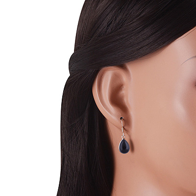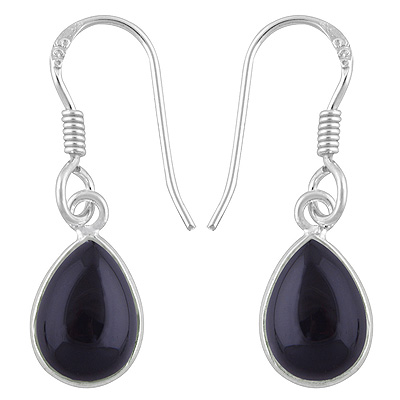 Home | Silver Earrings | Cabochon Earrings | Beautiful Handmade Bezel Black Onyx Pear Shape 925 Sterling Solid Silver Dangle Earrings