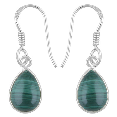 Home | Silver Earrings | Cabochon Earrings | Beautiful Handmade Bezel Malachite Pear Shape 925 Sterling Solid Silver Dangle Earrings