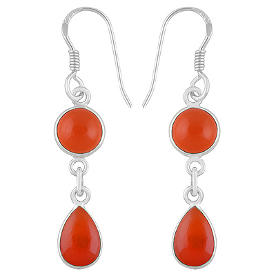 Home | Silver Earrings | Cabochon Earrings | Alluring Two Stone Carnelian Round/Pear Shape 925 Sterling Solid Silver Dangle Earrings