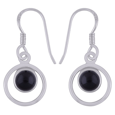 Home | Silver Earrings | Cabochon Earrings | Beautiful Handcrafted Circle Around Black Onyx Round Shape 925 Sterling Solid Silver Dangle Earrings