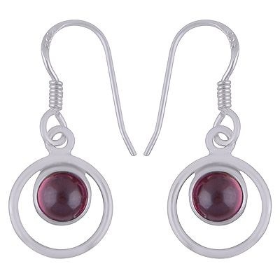 Home | Silver Earrings | Cabochon Earrings | Beautiful Handcrafted Circle Around Garnet Round Shape 925 Sterling Solid Silver Dangle Earrings