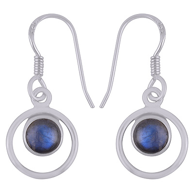 Home | Silver Earrings | Cabochon Earrings | Beautiful Handcrafted Circle Around Labradorite Round Shape 925 Sterling Solid Silver Dangle Earrings