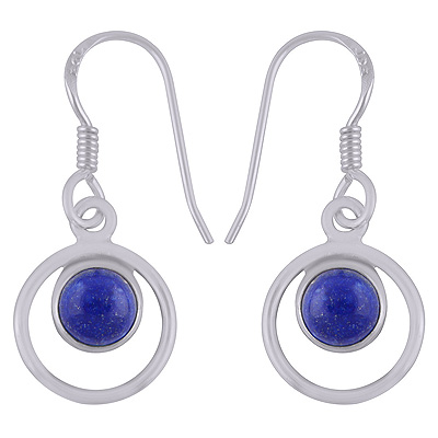 Home | Silver Earrings | Cabochon Earrings | Beautiful Handcrafted Circle Around Lapis Round Shape 925 Sterling Solid Silver Dangle Earrings