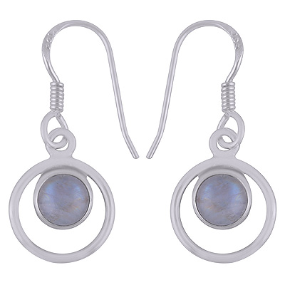 Home | Silver Earrings | Cabochon Earrings | Beautiful Handcrafted Circle Around Rainbow Moonstone Round Shape 925 Sterling Solid Silver Dangle Earrings