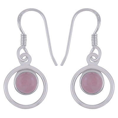 Home | Silver Earrings | Cabochon Earrings | Beautiful Handcrafted Circle Around Rose Quartz Round Shape 925 Sterling Solid Silver Dangle Earrings