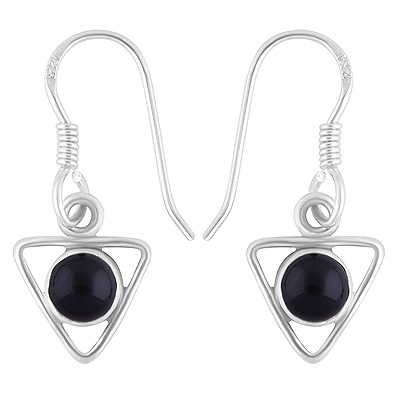 Home | Silver Earrings | Cabochon Earrings | Gorgeous Triangle Black Onyx Round Shape 925 Sterling Solid Silver Dangle Earrings