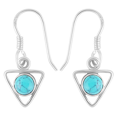 Home | Silver Earrings | Cabochon Earrings | Gorgeous Triangle Turquoise Round Shape 925 Sterling Solid Silver Dangle Earrings