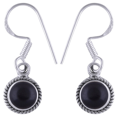 Home | Silver Earrings | Cabochon Earrings | Authentic Wire Work Around Black Onyx Round Shape 925 Sterling Solid Silver Earrings