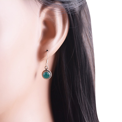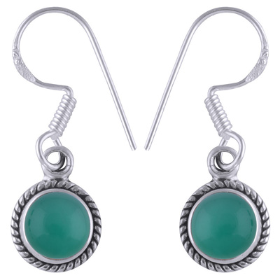 Home | Silver Earrings | Cabochon Earrings | Authentic Wire Work Around Green Onyx Round Shape 925 Sterling Solid Silver Earrings