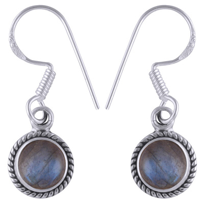 Home | Silver Earrings | Cabochon Earrings | Authentic Wire Work Around Labradorite Round Shape 925 Sterling Solid Silver Earrings