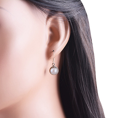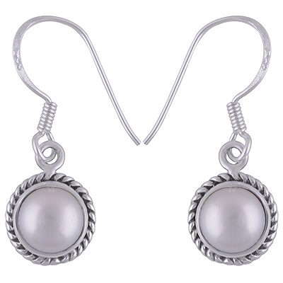 Home | Silver Earrings | Cabochon Earrings | Authentic Wire Work Around Pearl Round Shape 925 Sterling Solid Silver Earrings