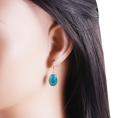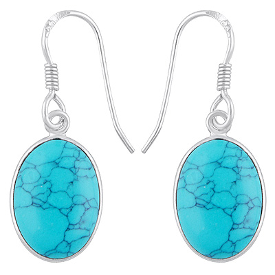 Home | Silver Earrings | Cabochon Earrings | Alluring Plain Bezel Turquoise Oval Shape 925 Sterling Solid Silver Dangle Earrings