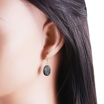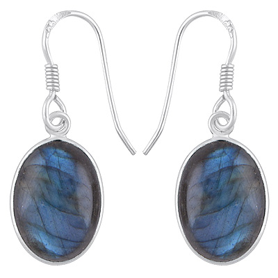 Home | Silver Earrings | Cabochon Earrings | Alluring Plain Bezel Labradorite Oval Shape 925 Sterling Solid Silver Dangle Earrings