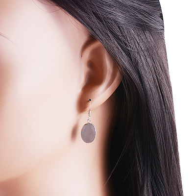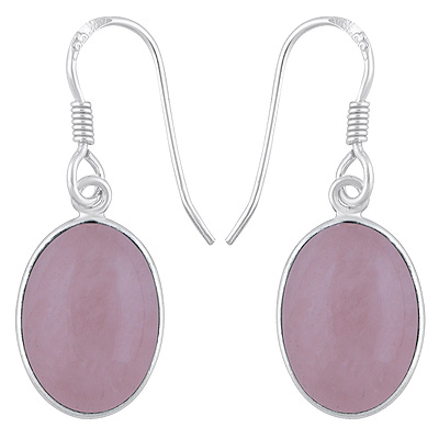 Home | Silver Earrings | Cabochon Earrings | Alluring Plain Bezel Rose Quartz Oval Shape 925 Sterling Solid Silver Dangle Earrings