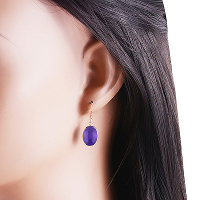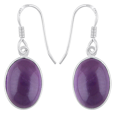 Home | Silver Earrings | Cabochon Earrings | Alluring Plain Bezel Amethyst Oval Shape 925 Sterling Solid Silver Dangle Earrings