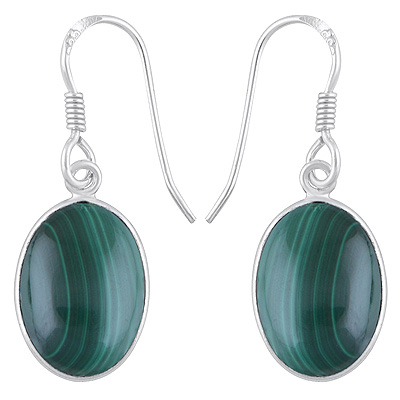 Home | Silver Earrings | Cabochon Earrings | Alluring Plain Bezel Malachite Oval Shape 925 Sterling Solid Silver Dangle Earrings
