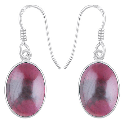Home | Silver Earrings | Cabochon Earrings | Alluring Plain Bezel Garnet Oval Shape 925 Sterling Solid Silver Dangle Earrings