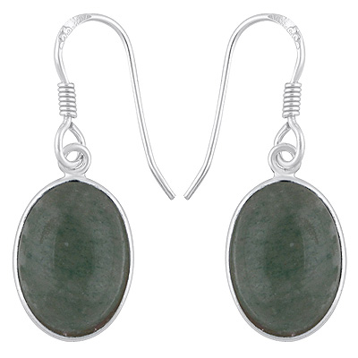 Home | Silver Earrings | Cabochon Earrings | Alluring Plain Bezel Green Aventurine Oval Shape 925 Sterling Solid Silver Dangle Earrings