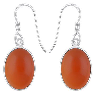 Home | Silver Earrings | Cabochon Earrings | Alluring Plain Bezel Carnelian Oval Shape 925 Sterling Solid Silver Dangle Earrings