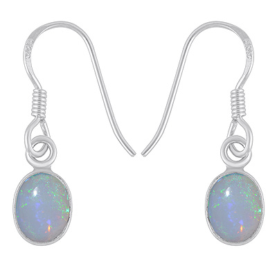 Home | Silver Earrings | Cabochon Earrings | Plain Collet Natural Ethiopian Opal Oval Shape 925 Sterling Solid Silver Dangle Earrings