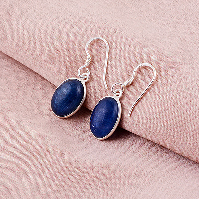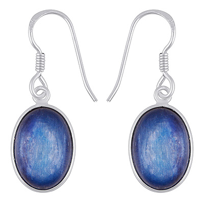 Classic Bezel Frame Around Kyanite Oval Shape 925 Sterling Solid Silver Dangle Earrings
