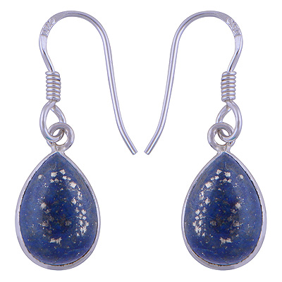 Home | Silver Earrings | Cabochon Earrings | Classic Handmade Bezel Lapis Pear Shape 925 Sterling Solid Silver Dangle Earrings