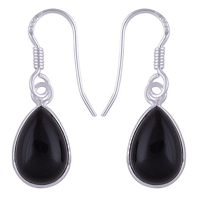 Home | Silver Earrings | Cabochon Earrings | Classic Handmade Bezel Black Onyx Pear Shape 925 Sterling Solid Silver Dangle Earrings