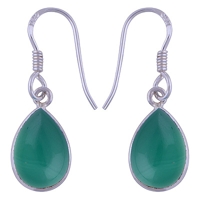 Home | Silver Earrings | Cabochon Earrings | Classic Handmade Bezel Green Onyx Pear Shape 925 Sterling Solid Silver Dangle Earrings