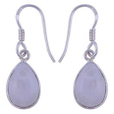 Home | Silver Earrings | Cabochon Earrings | Classic Handmade Bezel Rainbow Moonstone Pear Shape 925 Sterling Solid Silver Dangle Earrings