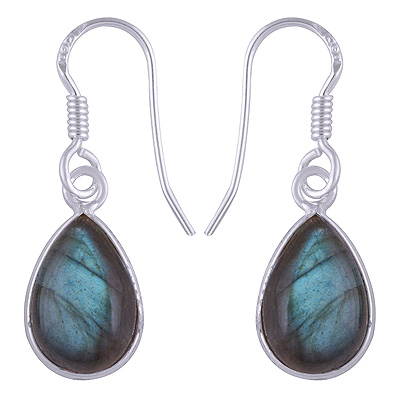 Home | Silver Earrings | Cabochon Earrings | Classic Handmade Bezel Labradorite Pear Shape 925 Sterling Solid Silver Dangle Earrings