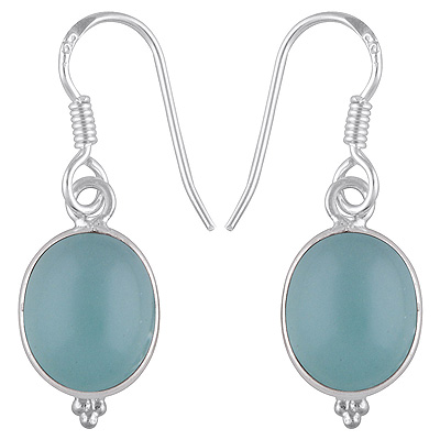 Home | Silver Earrings | Cabochon Earrings | Gorgeous With Rawa Bezel Aqua Chalcedony Oval Shape 925 Sterling Solid Silver Dangle Earrings
