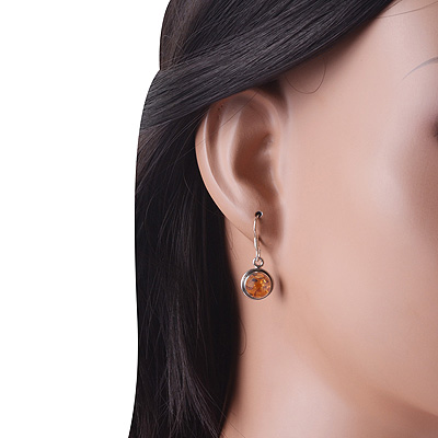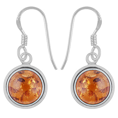 Home | Silver Earrings | Cabochon Earrings | Stunning Gemstone Amber Round Shape 925 Sterling Solid Silver Dangle Earrings