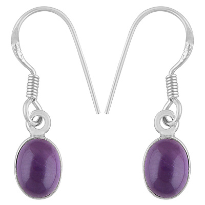 Beautiful Handcrafted Design with Gemstone Amethyst Oval Shape 925 Sterling Solid Silver Dangle Earrings