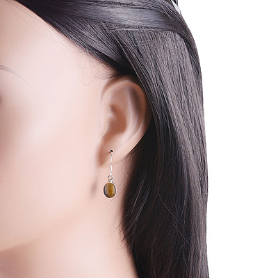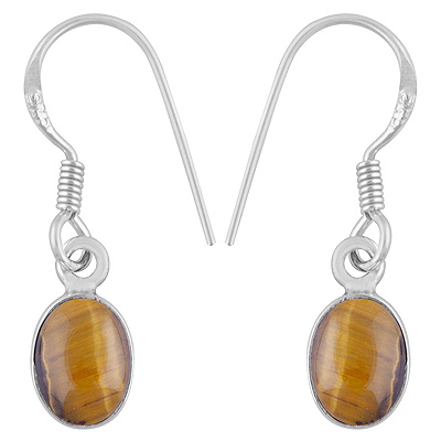 Beautiful Handcrafted Design with Gemstone Tiger's Eye Oval Shape 925 Sterling Solid Silver Dangle Earrings