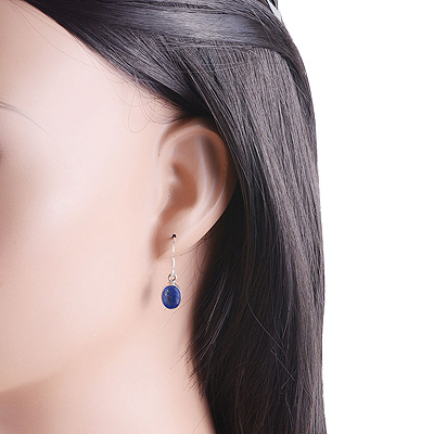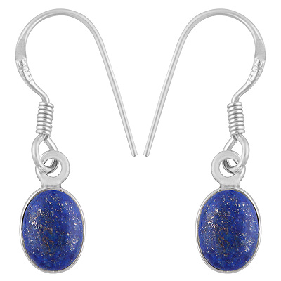 Beautiful Handcrafted Design with Gemstone Lapis Oval Shape 925 Sterling Solid Silver Dangle Earrings