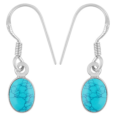 Beautiful Handcrafted Design with Gemstone Turquoise Oval Shape 925 Sterling Solid Silver Dangle Earrings