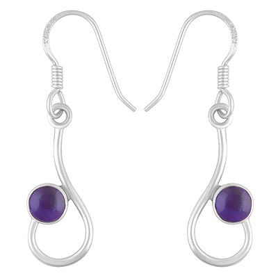 Home | Silver Earrings | Cabochon Earrings | Gorgeous Design Amethyst Round Shape 925 Sterling Solid Silver Dangle Earrings