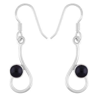 Home | Silver Earrings | Cabochon Earrings | Gorgeous Design Black Onyx Round Shape 925 Sterling Solid Silver Dangle Earrings