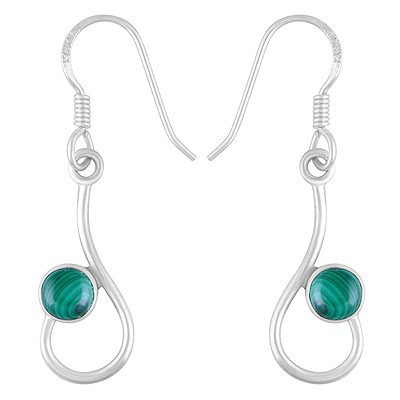 Home | Silver Earrings | Cabochon Earrings | Gorgeous Design Malachite Round Shape 925 Sterling Solid Silver Dangle Earrings