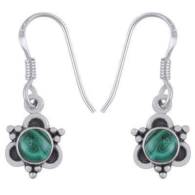 Home | Silver Earrings | Cabochon Earrings | Alluring Rawa Work Around Blue Chalcedony Round Shape 925 Sterling Solid Silver Dangle Earrings