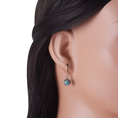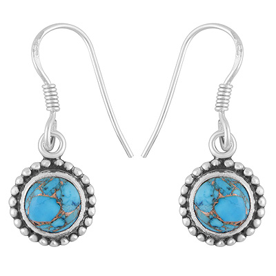 Stunning Rawa Work Around Blue Copper Turquoise Round Shape 925 Sterling Solid Silver Dangle Earrings