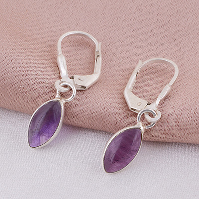 Home | Silver Earrings | Cabochon Earrings | Gorgeous Lobster Lock Amethyst Marquise Shape 925 Sterling Solid Silver Dangle Earrings