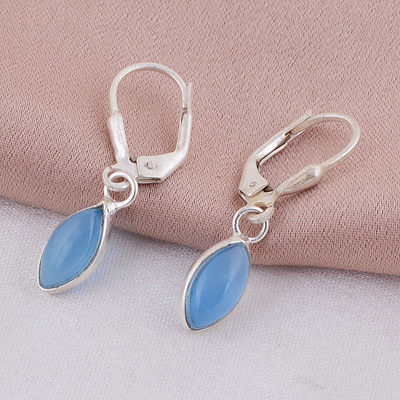 Home | Silver Earrings | Cabochon Earrings | Gorgeous Lobster Lock Blue Chalcedony Marquise Shape 925 Sterling Solid Silver Dangle Earrings