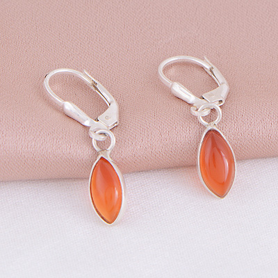 Home | Silver Earrings | Cabochon Earrings | Gorgeous Lobster Lock Carnelian Marquise Shape 925 Sterling Solid Silver Dangle Earrings