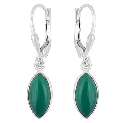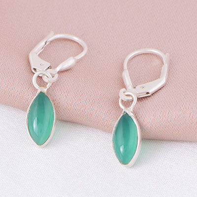 Home | Silver Earrings | Cabochon Earrings | Gorgeous Lobster Lock Green Onyx Marquise Shape 925 Sterling Solid Silver Dangle Earrings