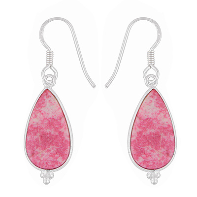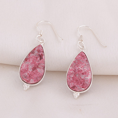 Gorgeous Rawa Work at Bottom Bezel Thulite Pear Shape 925 Sterling Solid Silver Dangle Earrings